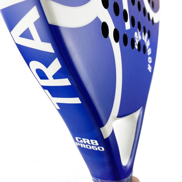 The impact surface is made of 3K carbon fiber. The frame is made of carbon fiber. With the visible carbon fiber on the surface, the racket becomes very beautiful. The surface has a sand effect.